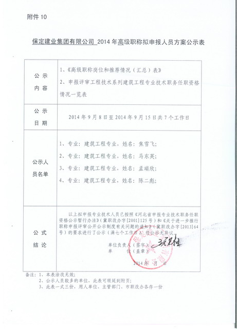 集團2014年高/中級職稱申報人員公示